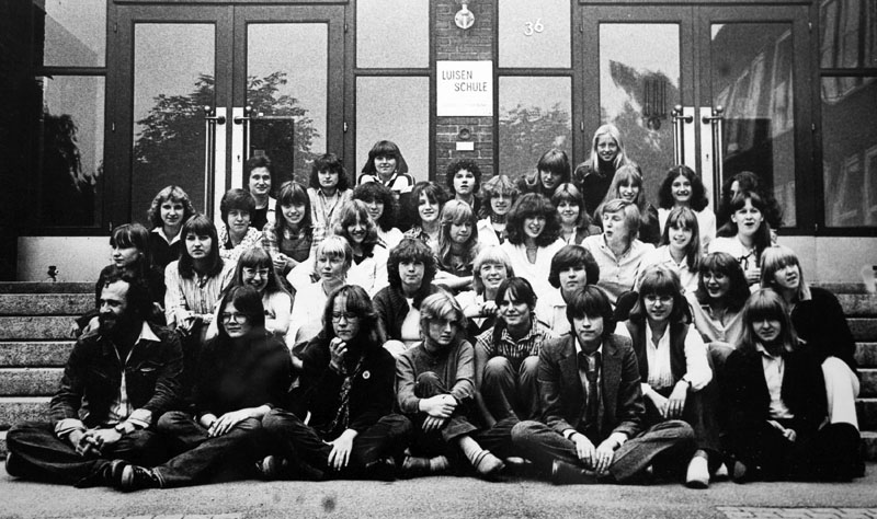 hintere 4. Reihe von links : Lehrer Wolfgang Much, Brigitte Schalla, Kerstin Krusenbaum, Eva Kleibrink, Bettina Langkau, Birte Grewen, Marina Lorenz, Karin Tübben, Lehrerin Ellen Klandt