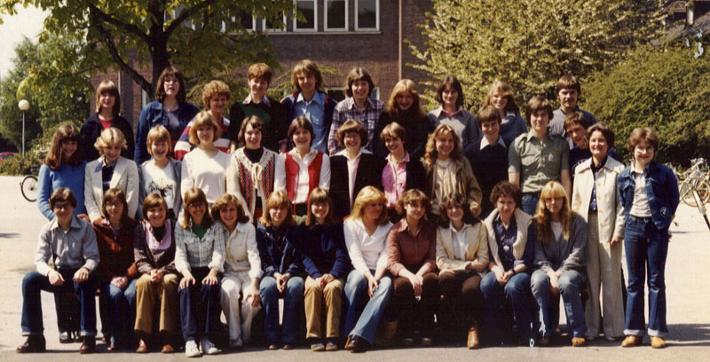 mittlere 2. Reihe von links : Michaela Eckel, Beatrix Roggenbuck, Simone Eitner, Eva-Maria Wittland (†), Frauke Meiser, Beate Ludewigt, Claudia Kötter, Ute Naujoks, Elke Knappheide, Rainer Rehfeld, Michael Schulte, Christoph Kauschitz, Lehrerin Frau Lambrecht, Kurt Schuster