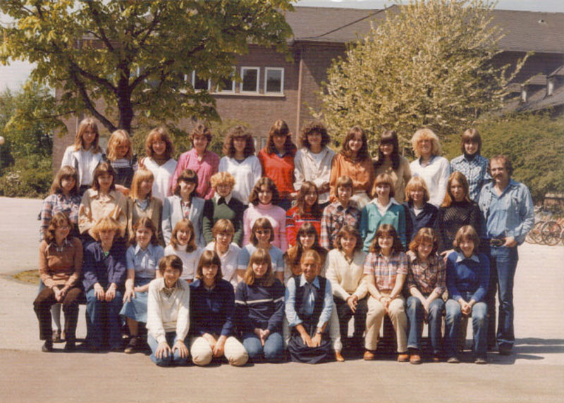 mittlere 3. Reihe von links : Christiane Scholten, Birgit Naskrent, Ulla Didcies, Ina Hammes, Monika Strelecki, Barbara Bittmann, Kerstin Krusenbaum, Birgit Hillemann, Regina Junk, Monika Fabri, Marina Lorenz, Lehrer Rolf Schmitz